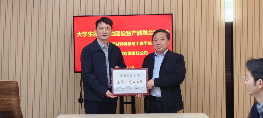 与安徽高量在产业合作与人才培育上的契合点。双方现场签订了人才培养与就业基地建设合作协议书,并向企业颁授了“安徽工业大学大学生就业基地”铜牌。